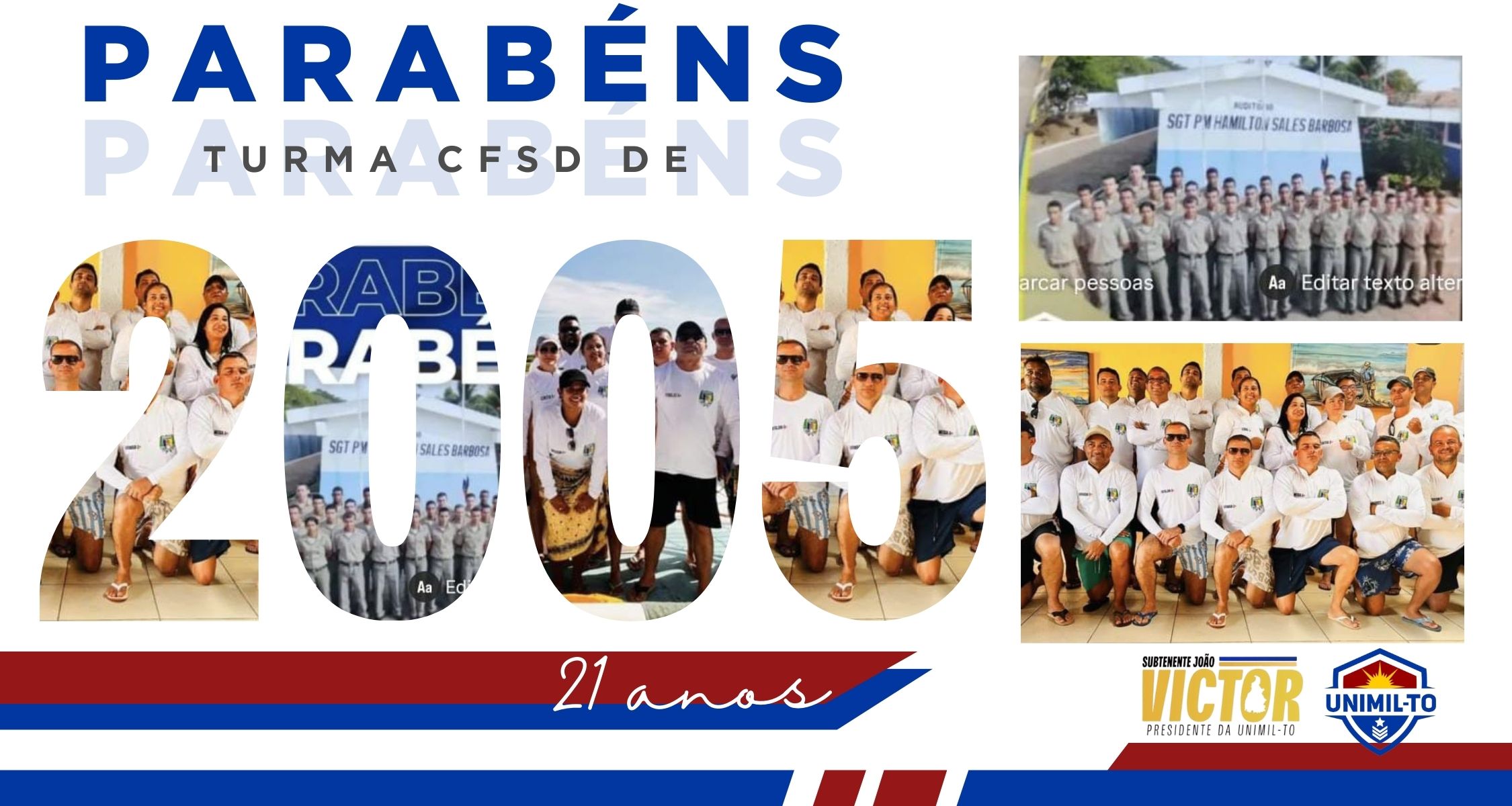 Neste Domingo, 18 de janeiro de 2025, a UNIMIL-TO celebra uma data especial: 21 anos de efetivo serviço da turma de 2005 do Curso de Formação de Soldados (CFSD) da Polícia Militar do Estado do Tocantins.